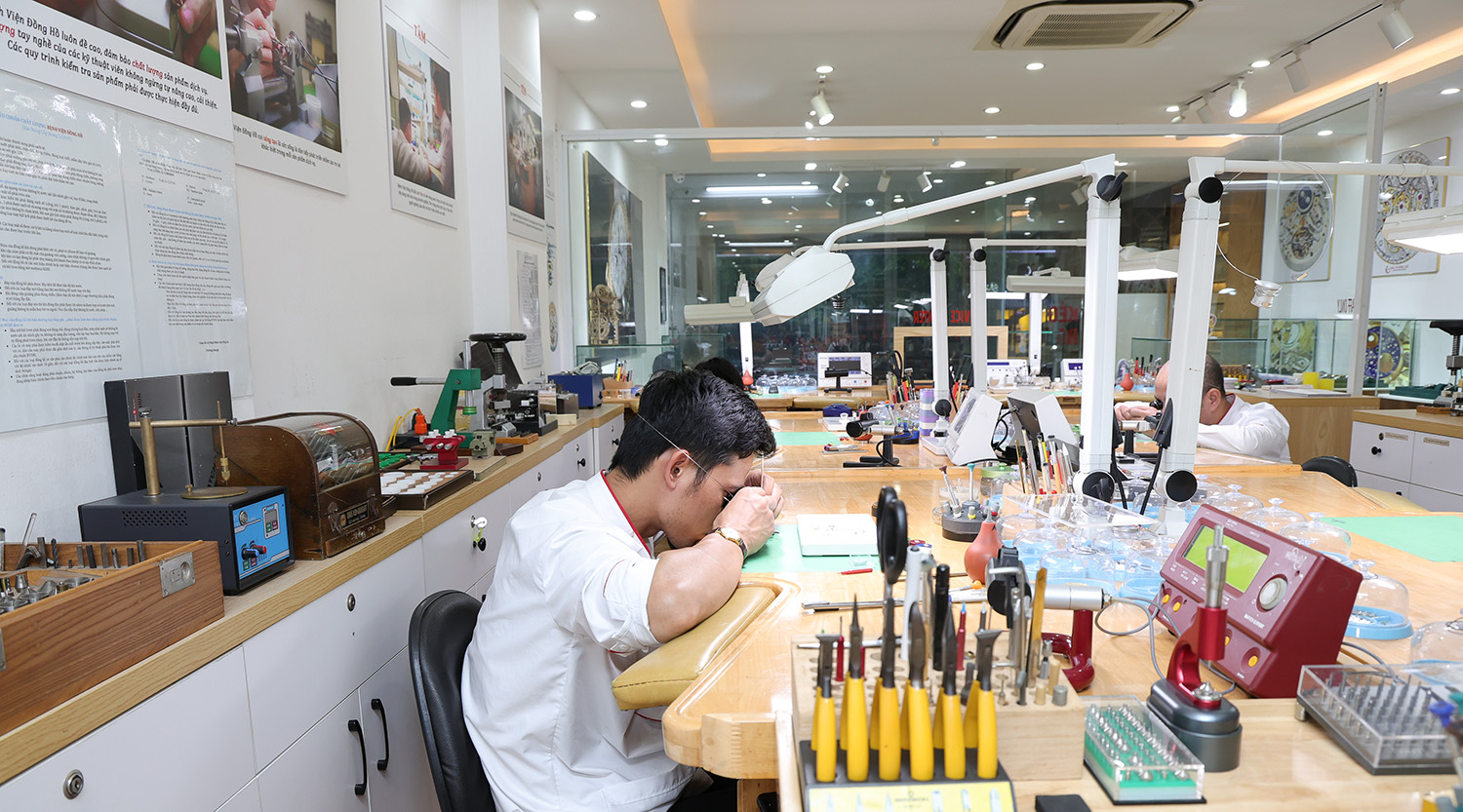 • Đầy đủ trang thiết bị hiện đại để phục hồi, bảo dưỡng những chiếc đồng hồ nhiều năm tuổi.
