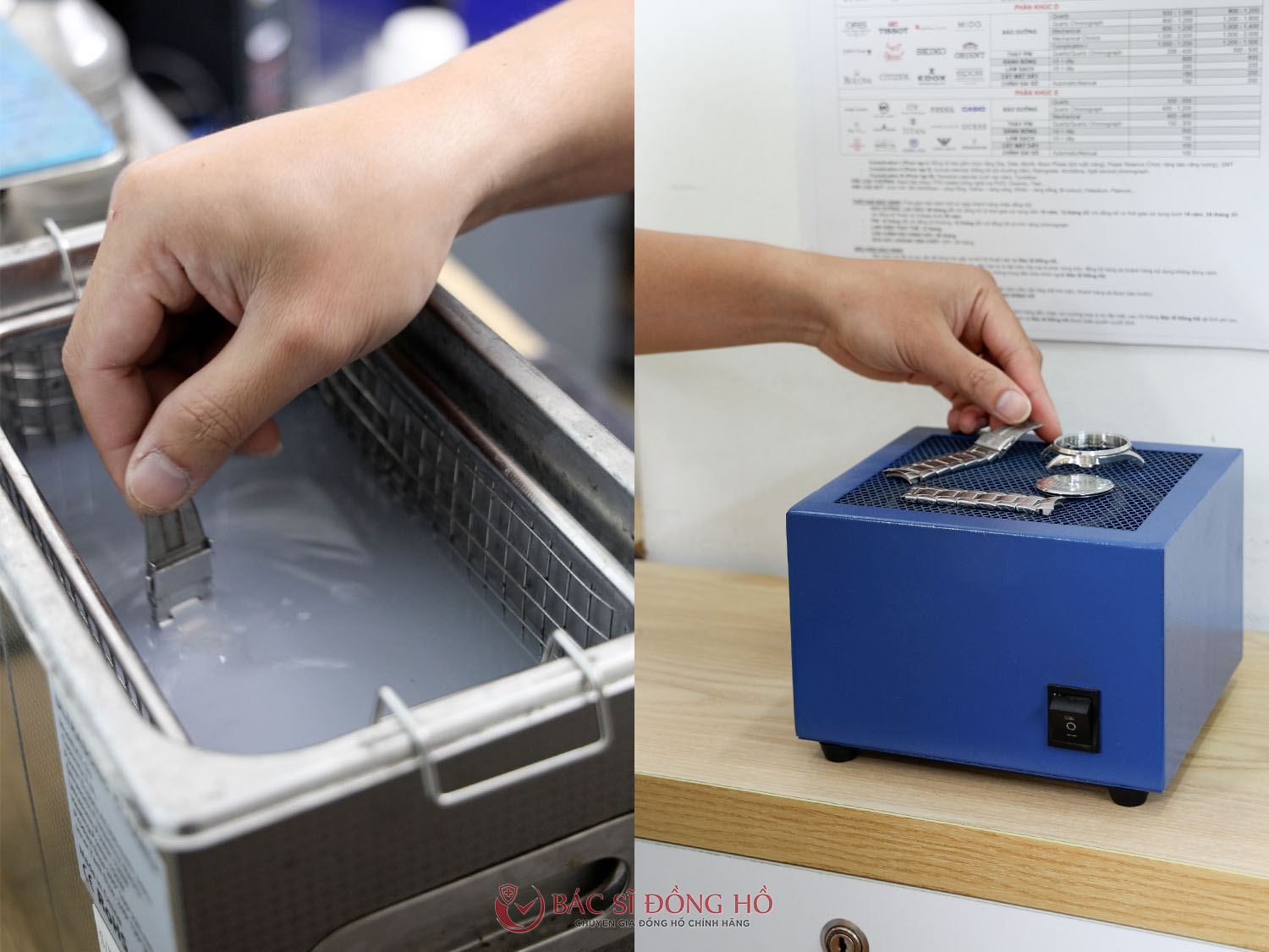 Nếu đồng hồ tiếp xúc với nước, hãy đưa ngay đến Bác Sĩ Đồng Hồ để kiểm tra và sửa chữa. Nước có thể gây hư hỏng nhanh chóng bên trong máy, và xử lý kịp thời sẽ giúp tránh những tổn thất nghiêm trọng, hạn chế chi phí sửa chữa phát sinh.