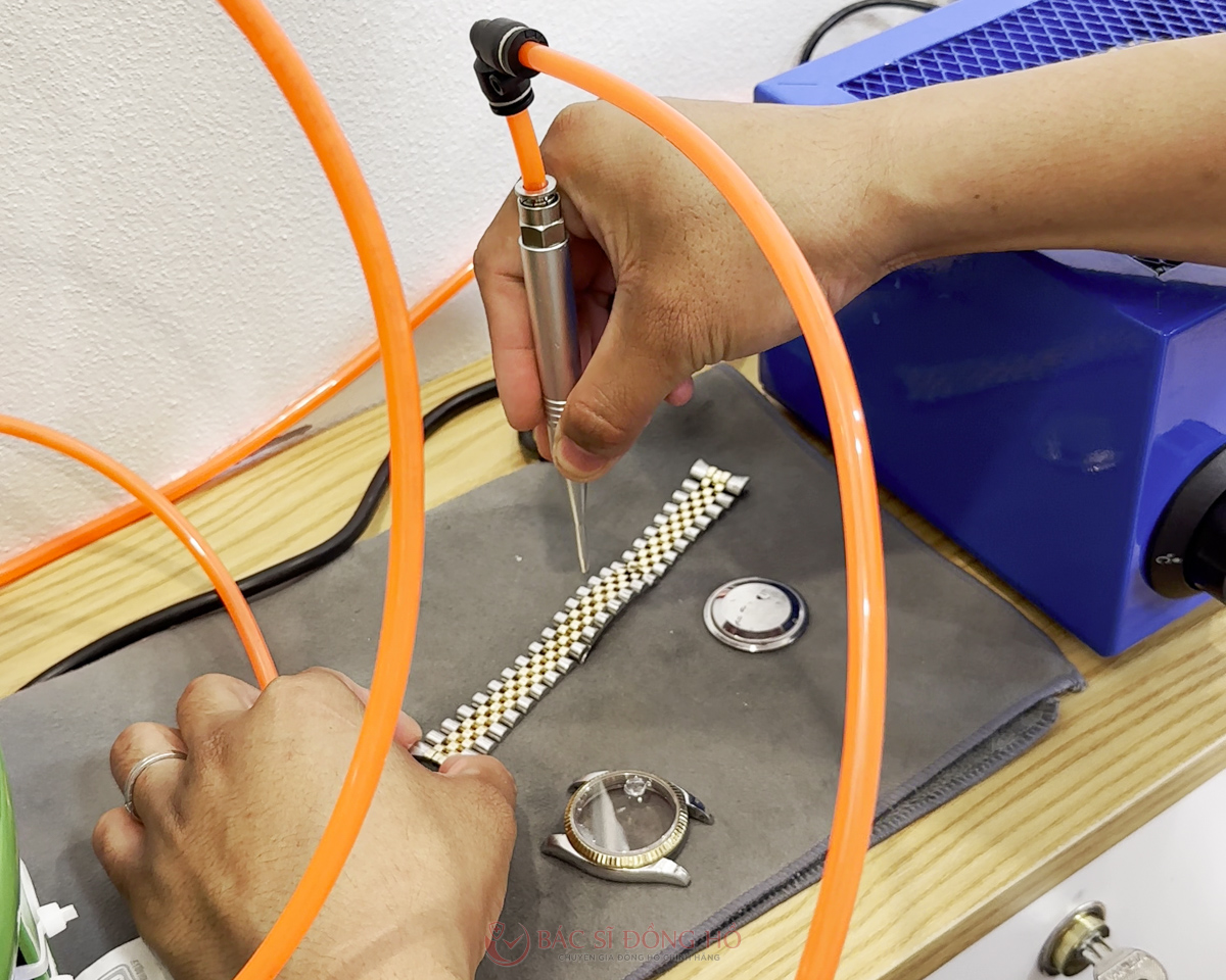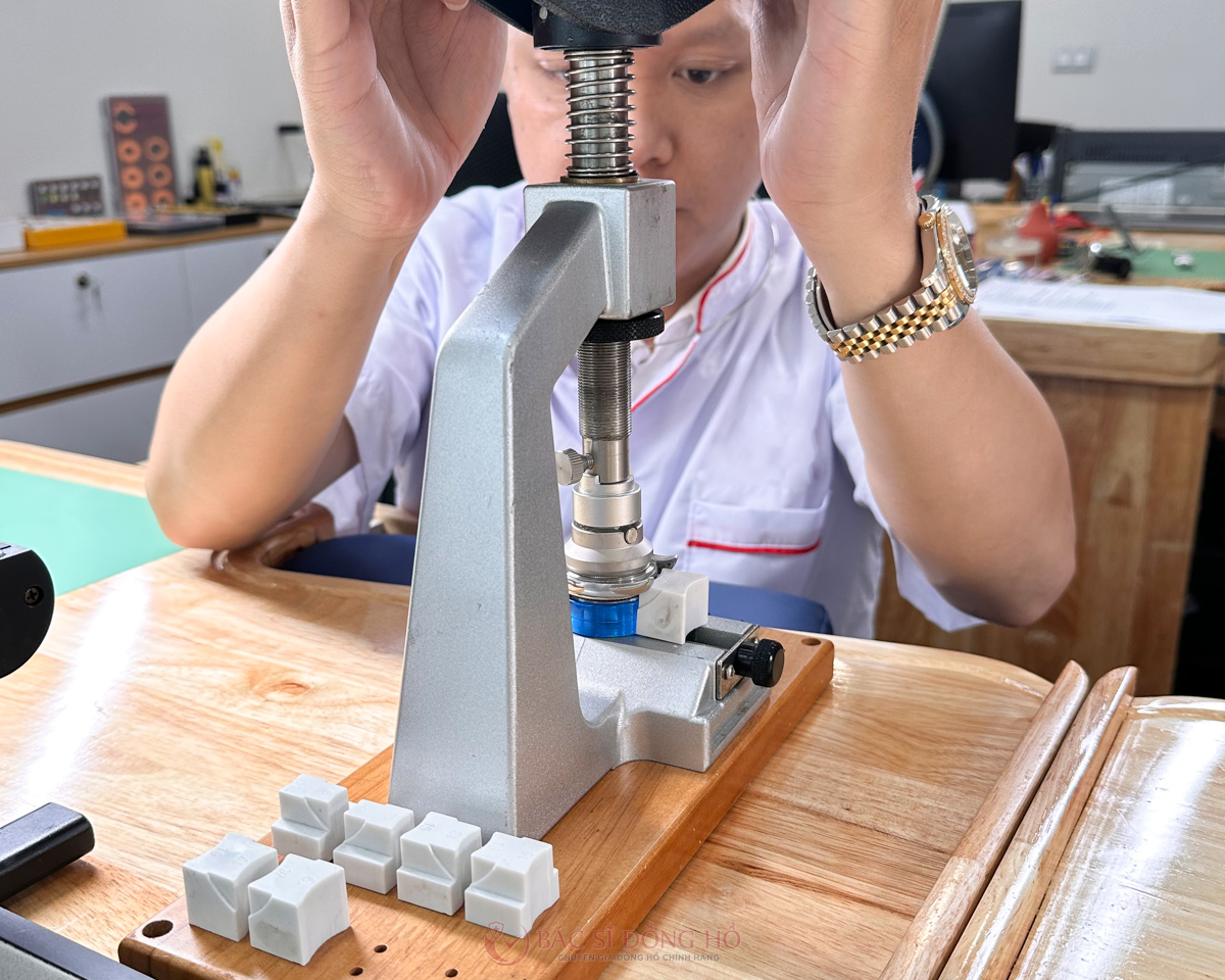 Kiểm tra khả năng chống và chịu nước của đồng hồ bằng máy đo áp suất chân không. Đồng hồ phải đạt khả năng chống nước như hãng sản xuất đưa ra.