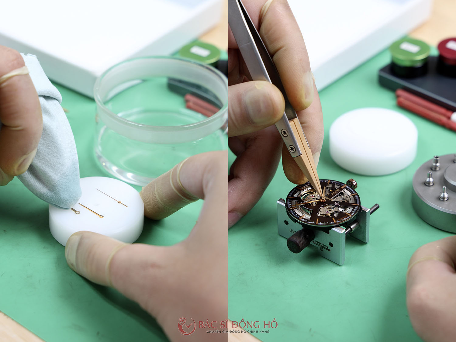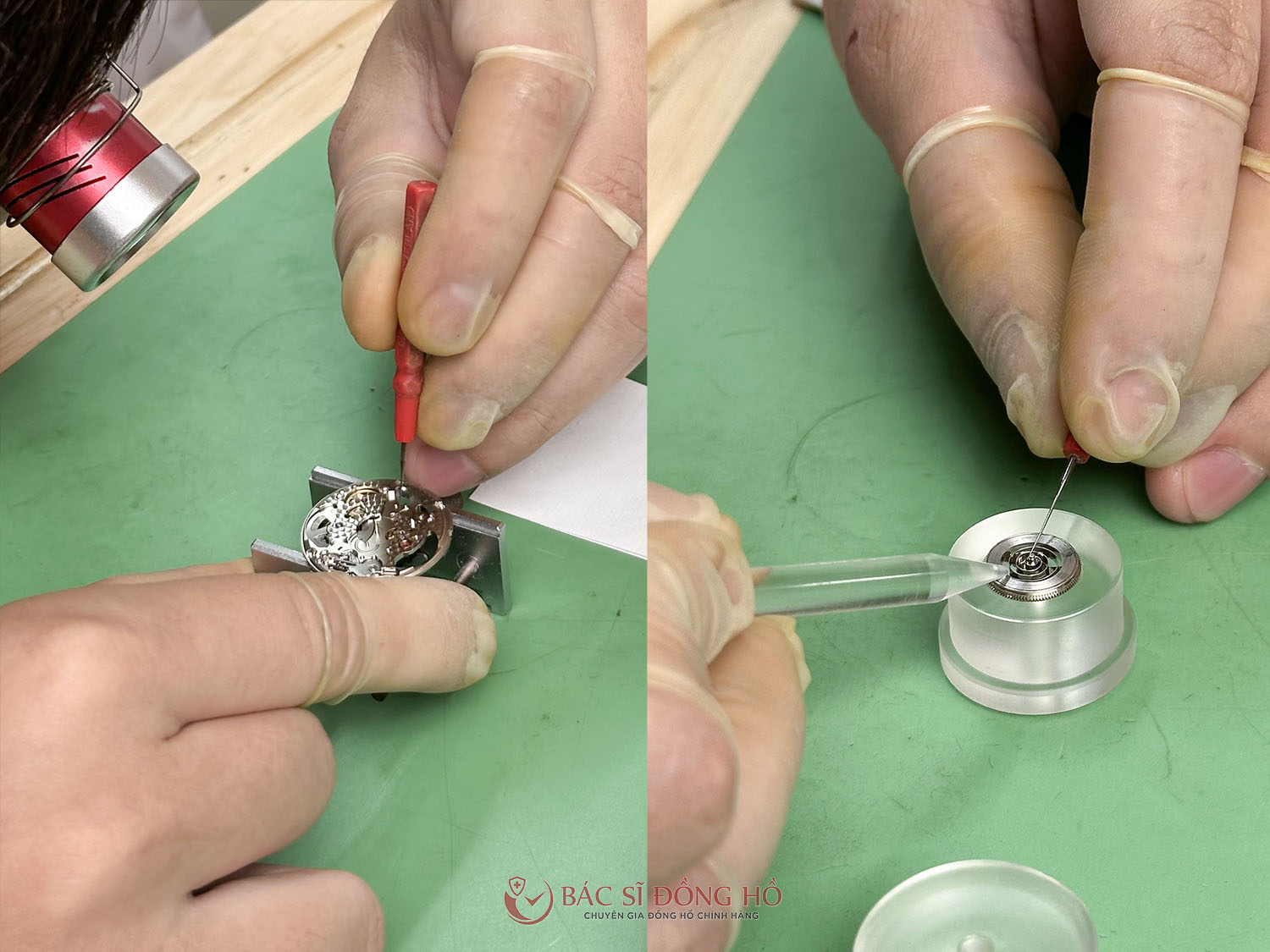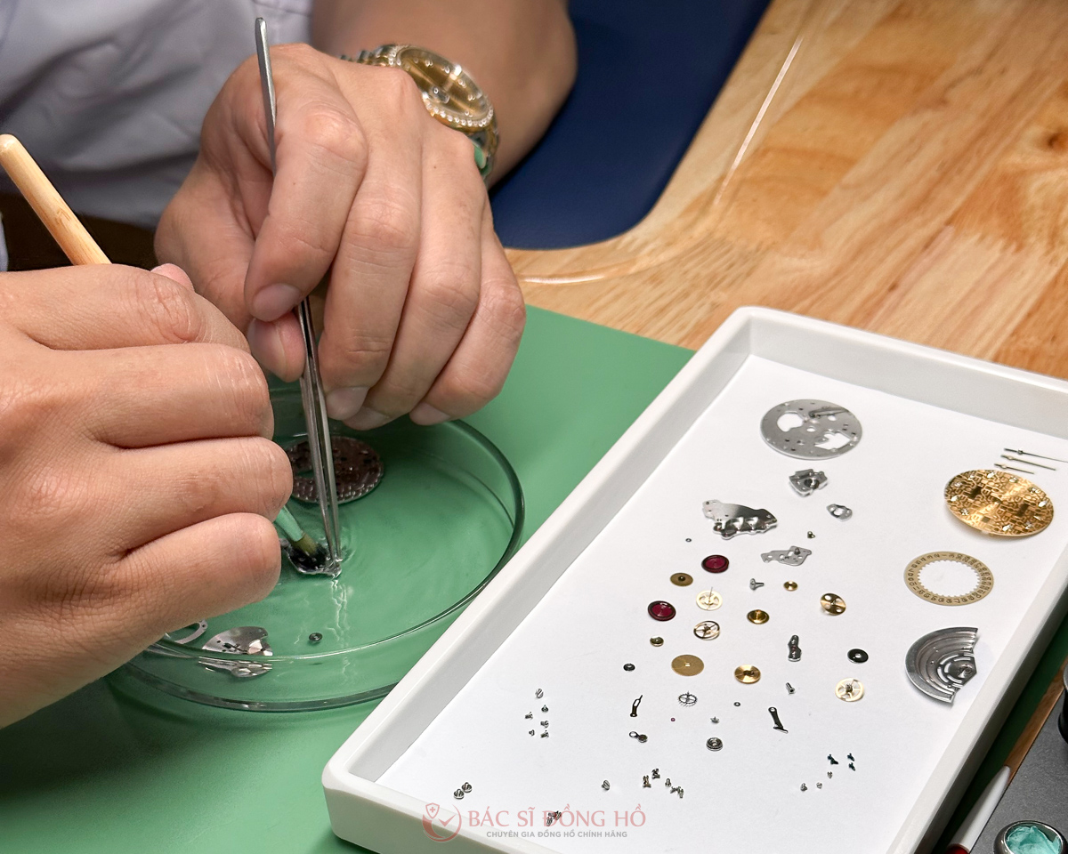 Trong quá trình này, đồng hồ sẽ được tháo rời từng bộ phận, làm sạch kỹ lưỡng, bôi trơn bằng dầu chuyên dụng, và sau đó lắp ráp lại một cách cẩn thận. Mỗi bước đều phải thực hiện với độ chính xác cao, đảm bảo bộ máy hoạt động ổn định và duy trì tuổi thọ lâu dài.