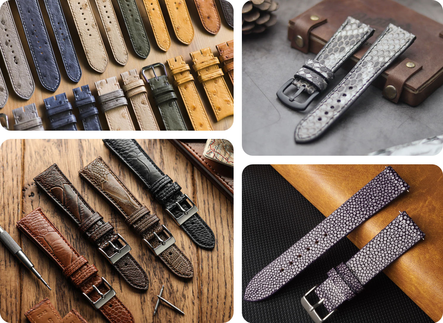 Mẫu dây da đồng hồ kỳ đà, thằn lằn, cá đuối… đem đến sự sang trọng và đẳng cấp cho những ai sử dụng.