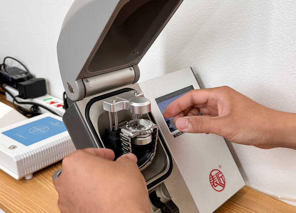 Kiểm tra lại độ chống nước của đồng hồ bằng máy đo áp suất chân không.
